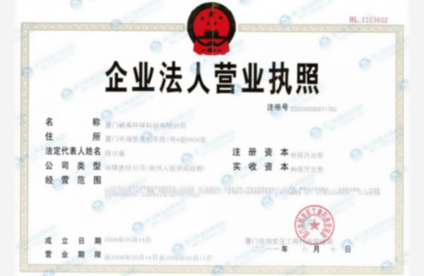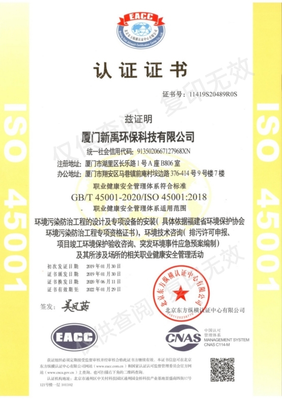環(huán)境管理體系認(rèn)證證書