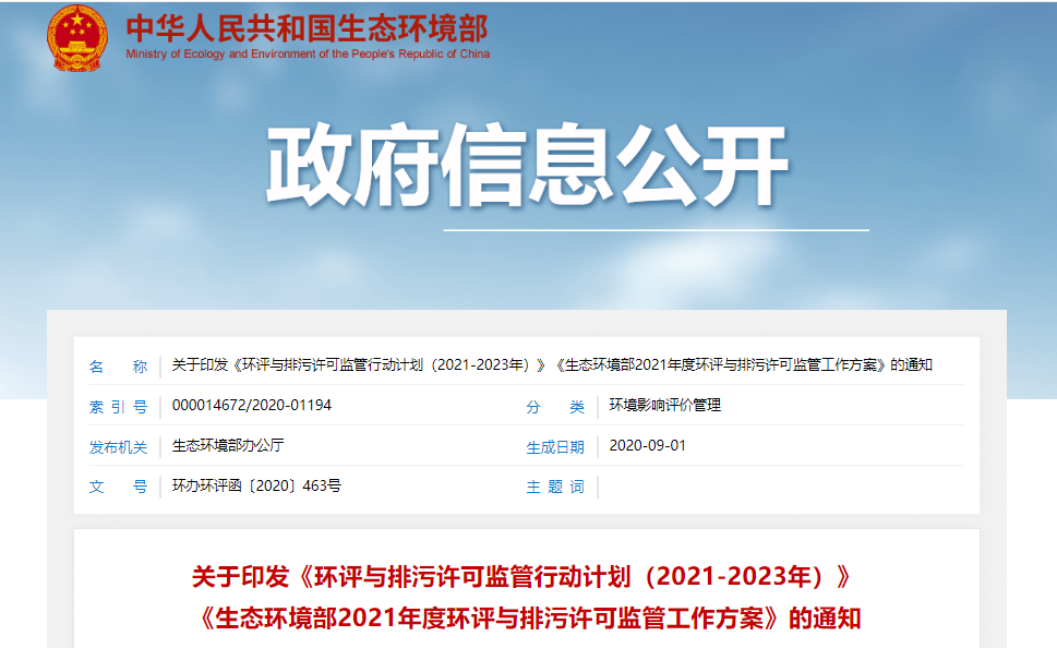 生態(tài)環(huán)境部2021年度環(huán)評與排污許可監(jiān)管工作方案